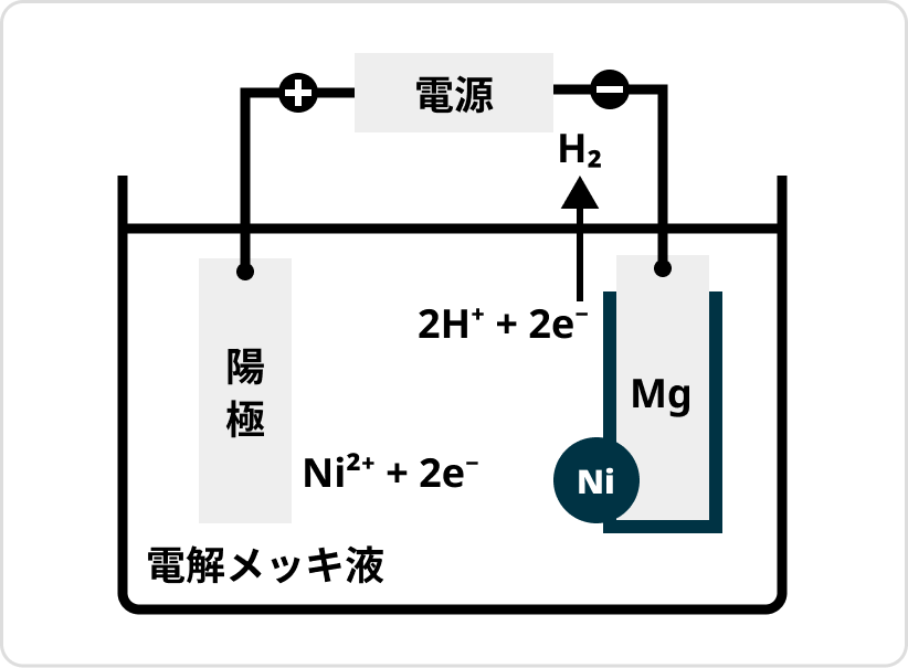 反応式はMgの上に施すめっきの種類によって異なります。 詳細は別途ご相談ください。 |