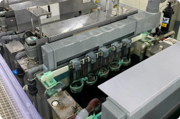 ここでは電気を使わず、化学反応によって金属皮膜を析出させます。これは、樹脂を電動化するための金属の下地を作る工程です。
